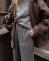 Pièce iconique du dressing Atelier Simai, notre pantalon de tailleur Charles est de retour cette saison dans un tissu gris à fines rayures, esprit tailleur intemporel.
